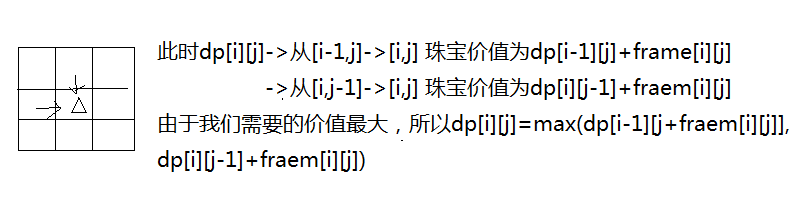 我们想要知道的是到达[i,j]为位置时的最大价值,所以dp[i][j]表示:到达[i,j]位置时,珠宝的最大价值