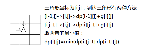 dp[i][j] = min(dp[i-1][j],dp[i][j-1]) + grid[i-1][j-1];