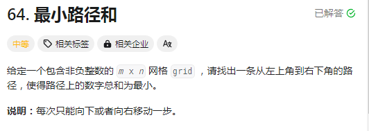 建议自己上手实现一下,链接:64. 最小路径和 - 力扣(LeetCode)