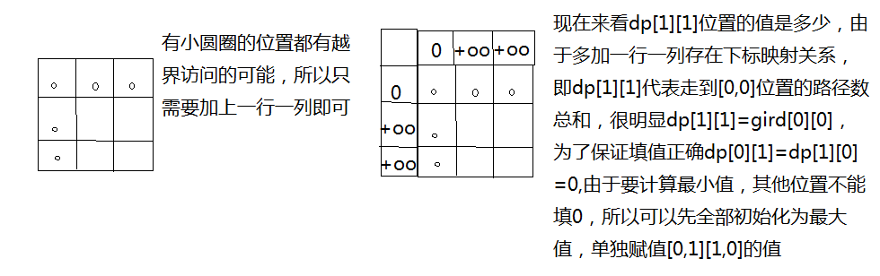 到达[i,j]之前要先到达[i-1,j]或[i,j-1]位置,比较得出最小值然后加上grid[i][j]的值