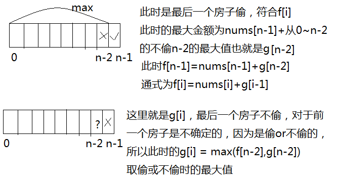 g[i]表示:到达i位置时,不偷最后一个房子,此时的最大金额