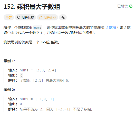 代码能力是需要实操的,坚持下来,152. 乘积最大子数组 - 力扣(LeetCode)