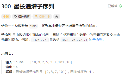 来开启今日的编写代码之旅吧,链接:300. 最长递增子序列 - 力扣(LeetCode)