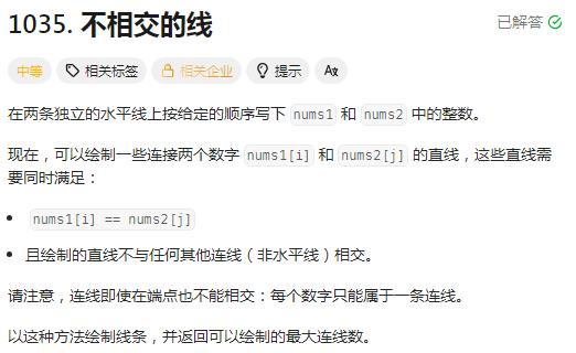 题目链接:1035. 不相交的线 - 力扣(LeetCode)