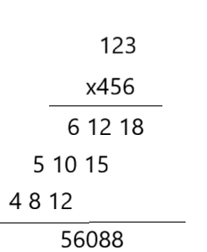 对于解法1,我们需要处理多次进位,计算123*6,123*50,123*400的时候需要处理进位,在计算和的时候也需要处理进位,这就导致了代码实现十分麻烦,所以在此基础上提出了优化