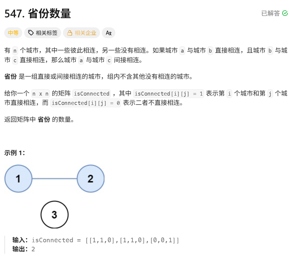 • 1、省份是一组直接或间接相连的城市(没有链接的单独城市也是省份)