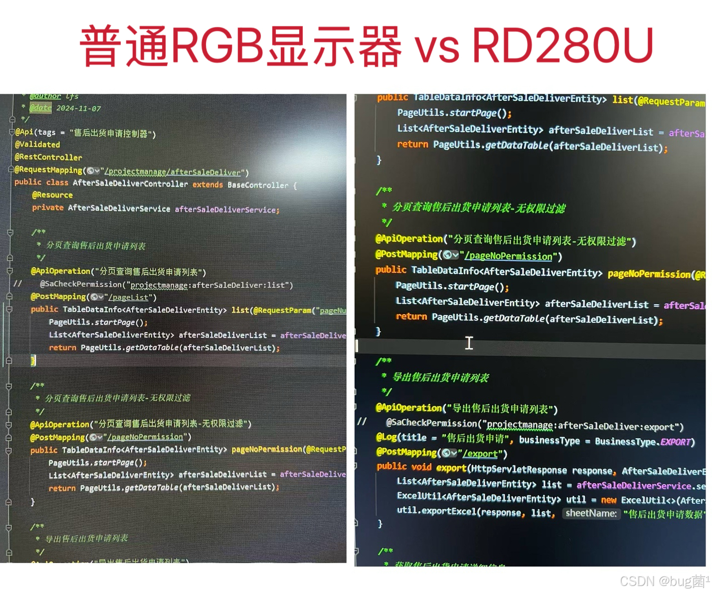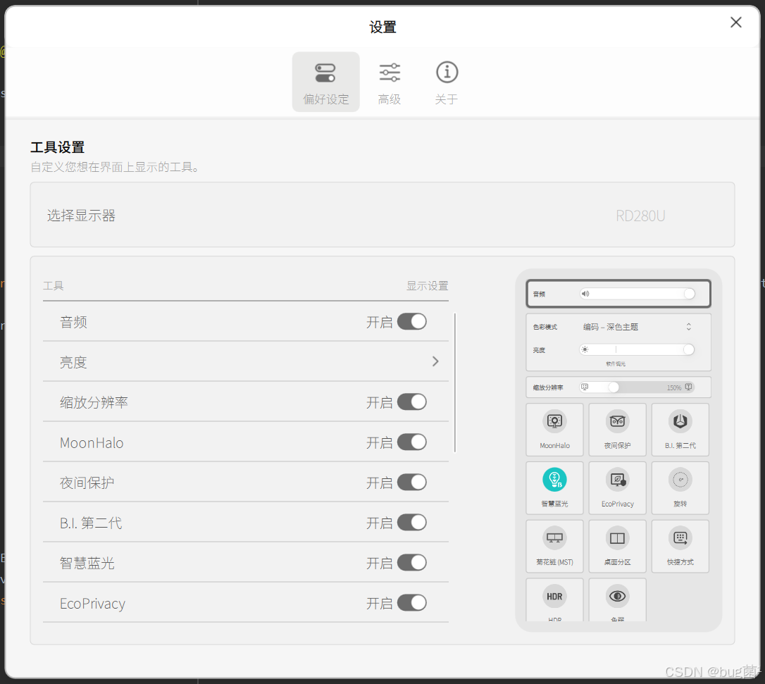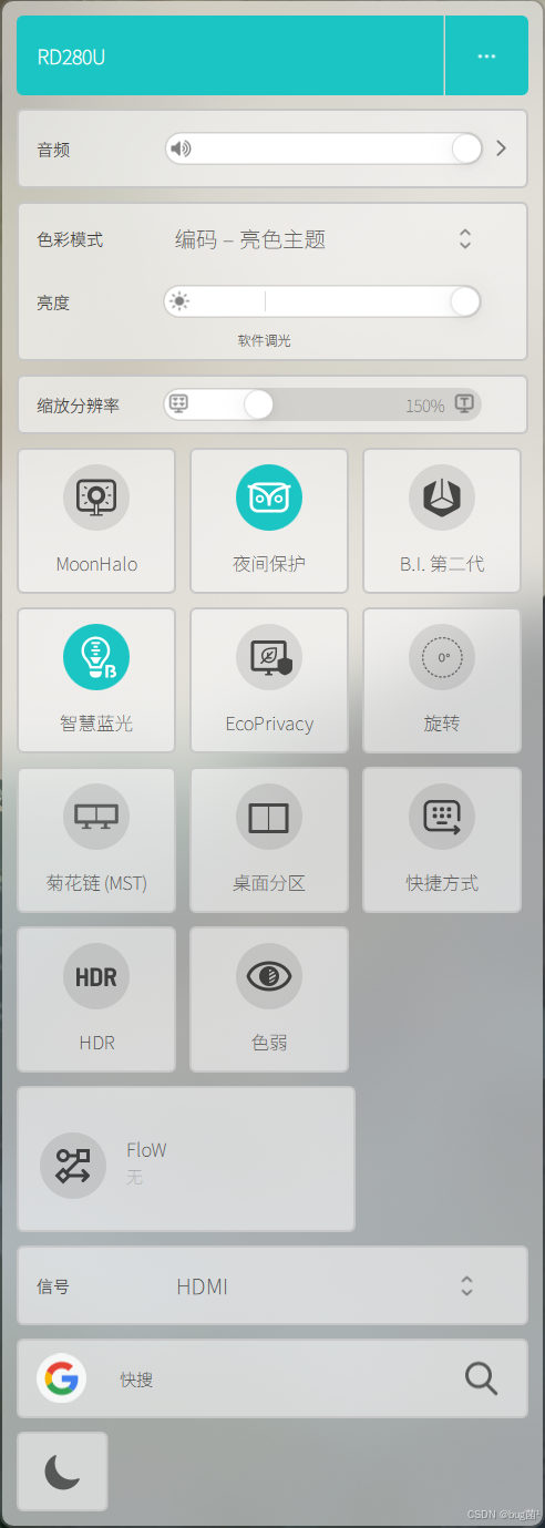 这是 RD280U 最打动我的功能之一。作为"为程序员定制"的专业显示器,它内置了编程色彩模式(Coding Mode),这不是简单的"护眼模式"或"阅读模式",而是针对代码编辑器的语法高亮做了色彩优化。