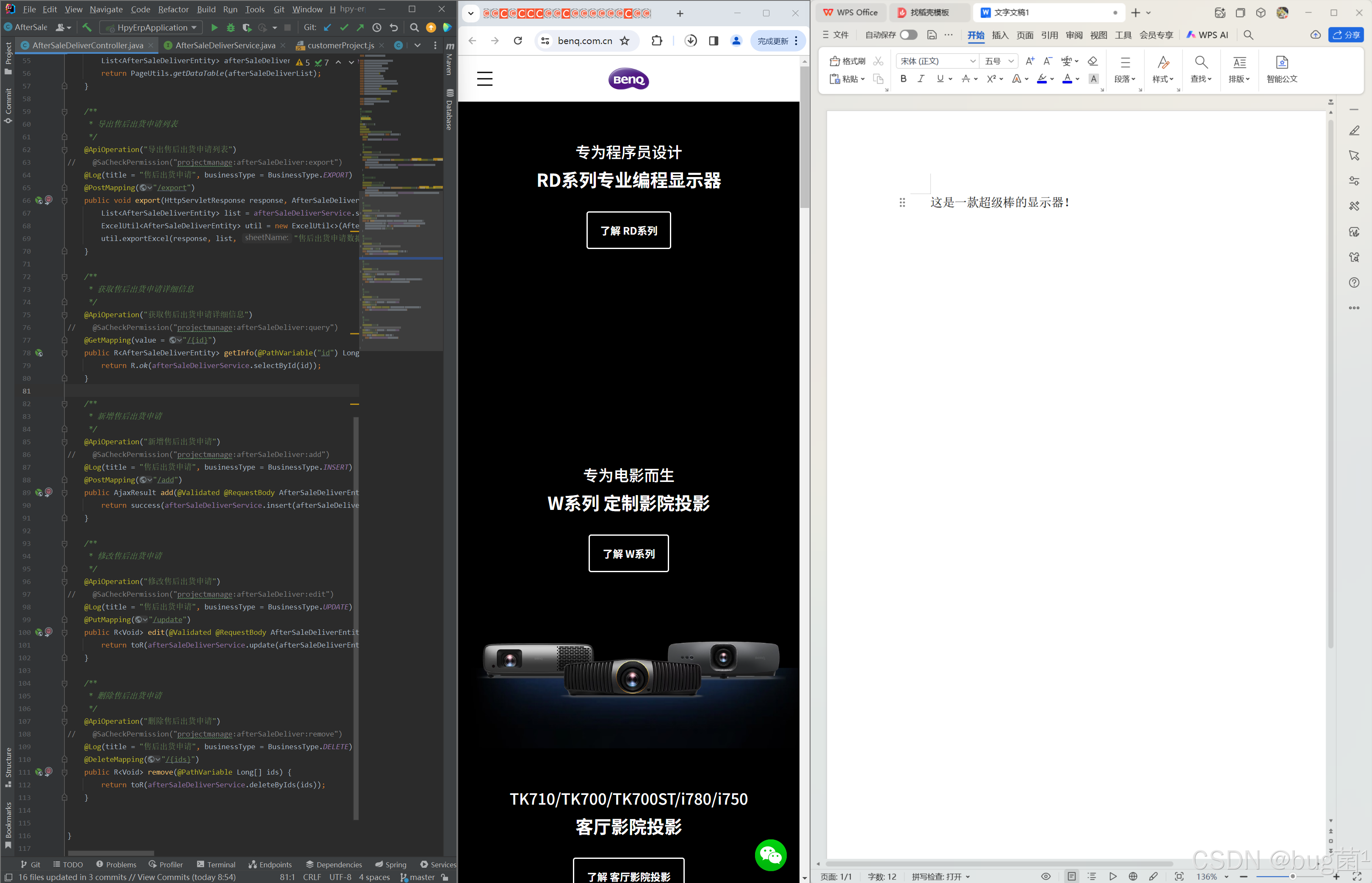 巧的是,最近我入手了一台明基 RD280U——一台"为程序员设计"的专业显示器。用了一个多月,我发现它几乎是按照上面这份"需求清单"设计出来的,并且我现在就是用的它为大家写的这篇文章。