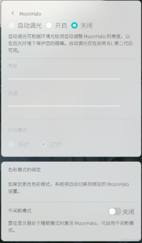 Ctrl + Alt + ↑/↓Ctrl + Alt + 1/2(台式机 / 笔记本)Ctrl + Alt + LCtrl + Alt + C/M/N(编码 / 会议 / 夜间)实际体验: