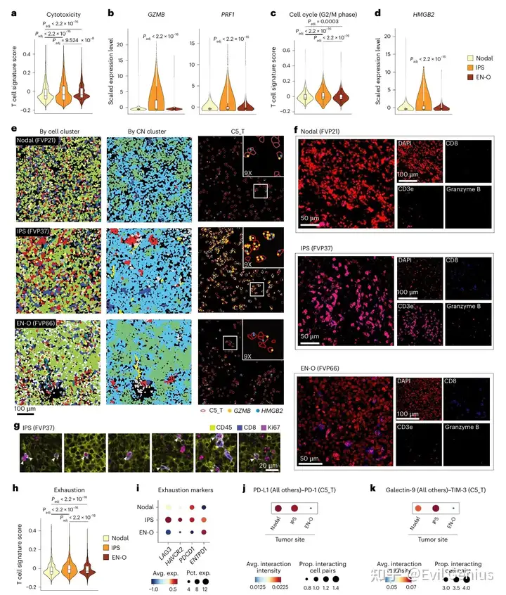 强大的效应功能:与结节性或EN-O DLBCL相比,IPS DLBCL中的T细胞表现出更强的细胞毒性、更高的效应分子表达和更强的增殖能力,提示存在活跃的抗原特异性T细胞应答和克隆扩增。