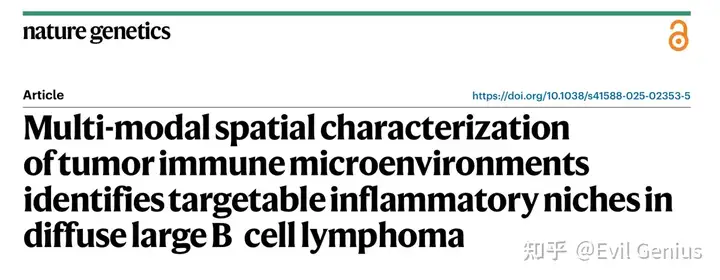 文献分享--弥漫性大B细胞淋巴瘤中肿瘤免疫微环境的多模态空间表征揭示可靶向的炎性生态位