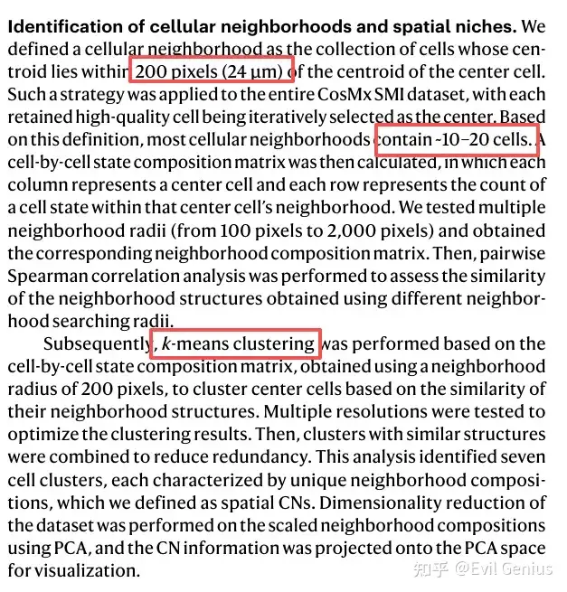 进行了细胞邻域分析,并将细胞生态位定义为中心200像素(24微米)范围内的细胞集合,形成了不同的细胞生态位。