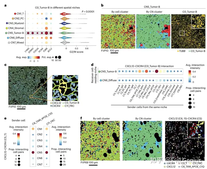 细胞间通讯分析显示,CXCL12(由基质细胞FRCs产生)–CXCR4(由肿瘤B细胞表达) 的相互作用是该生态位中最显著的信号通路。