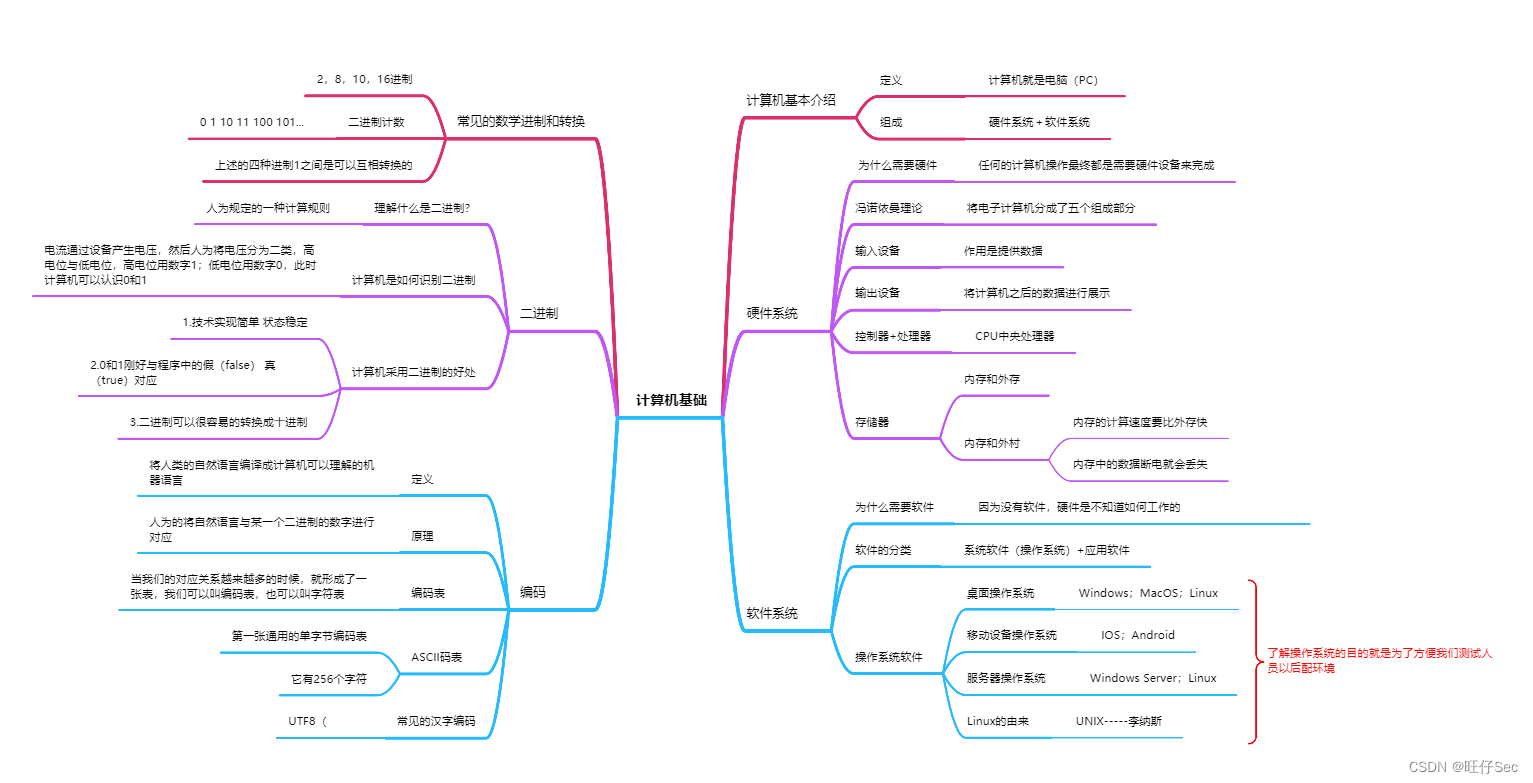 Linux:核心内容是由 李纳斯 编写,应用软件少。