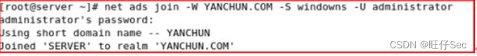 net ads join -W YANCHUN.COM -S dc -U administrator