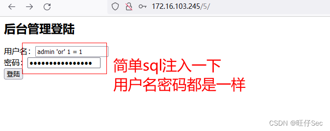 5.通过url访问http://靶机/5,对该页面进行渗透测试,将完成后返回的结果内容作为flag提交