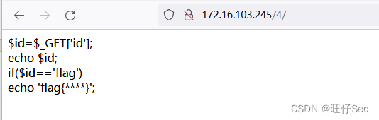 4.通过url访问http://靶机/4,对该页面进行渗透测试,将完成后返回的结果内容作为flag提交