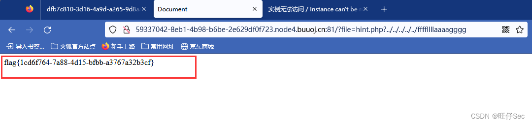hint.php?../…/…/…/…/ffffllllaaaagggg 我们可以想象他传入checkFile函数要经历 第一次白名单验证 一次?过滤后他就是hint.php 再进行一次白名单验证 返回为真 则达成条件进行包含得到flag