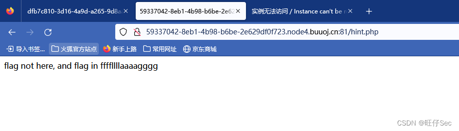 3.访问hint.php,得到一串提示信息 flag not here, and flag in ffffllllaaaagggg
