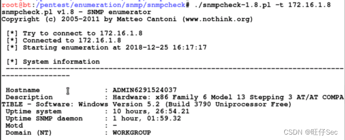 然后使用命令./snmpcheck-1.8.pl –t 172.16.1.8