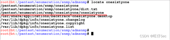 使用命令locate onesixtyone在bt5默认检索路径下搜索该工具