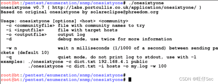 切换/pentest/enumeration/snmp/onesixtyone路径下