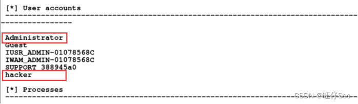 9.查看获取的系统信息,将系统管理员用户和异常(黑客)用户作为FLAG提交,(各用户之间用英文分号分割,例root;user)。