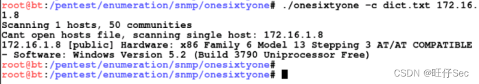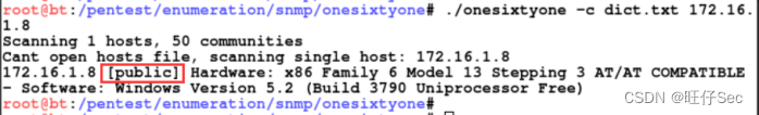 使用命令./onesixtyone -c dict.txt 172.16.1.8