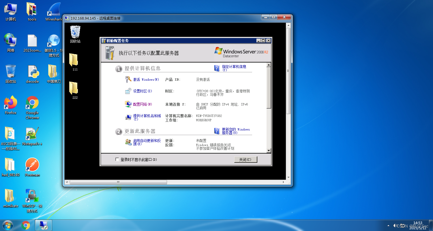 2、windows Server 2008 IP地址: 192.168.94.145
