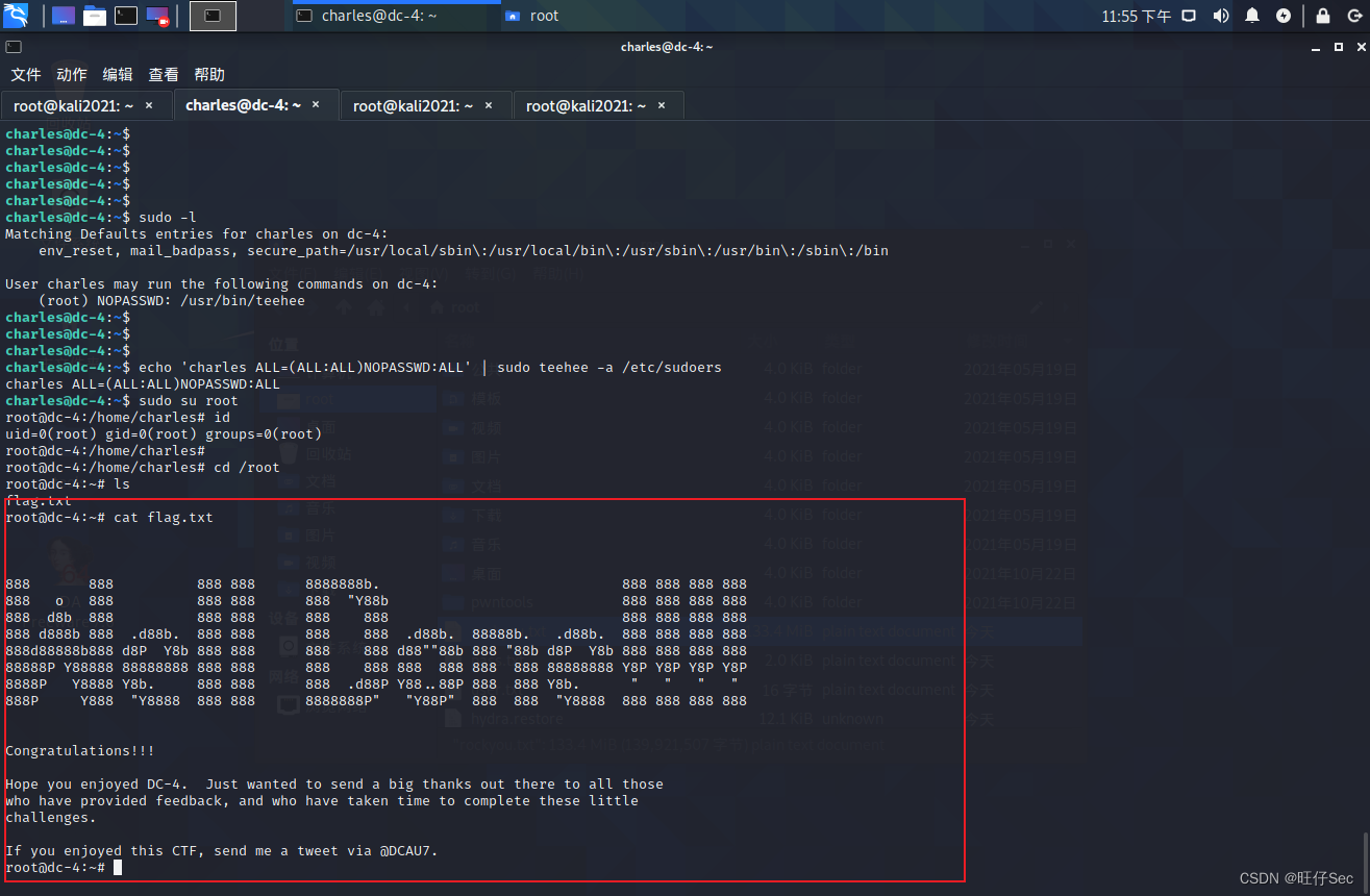 这里就提权成功了为root权限,最后查看一下/root/目录下的flag.txt文件