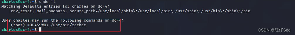 尝试sudo -l发现靶机有/usr/bin/teehee