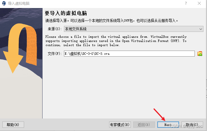 下载完成后,里面有一个ova的文件,直接导入到VirtualBox当中,如下图