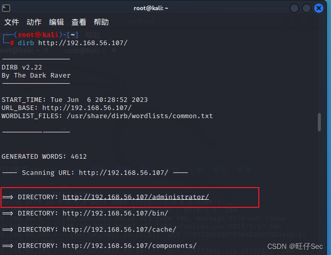 直接上dirb扫描目录试试,如下图所示