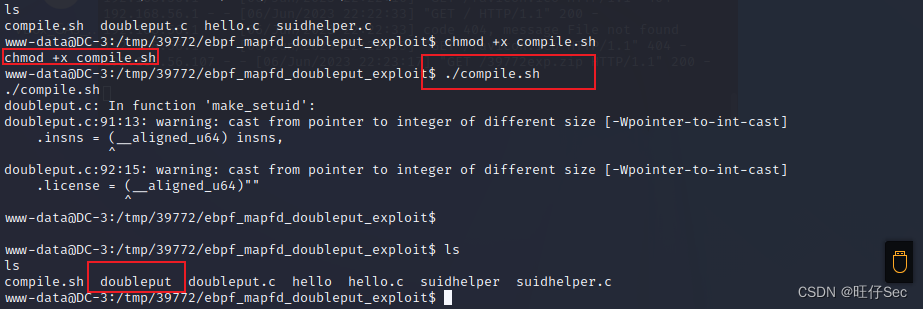 我们解压一下exploit.tar,得到一个ebpf_mapfd_doubleput_exploit目录,发现里面有几个文件