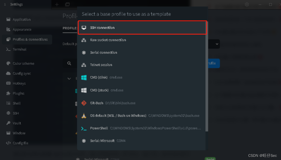 进入到设置页面后,选择 左边的profiles&connections 这个选项,然后点击「New profile」新建一个终端配置