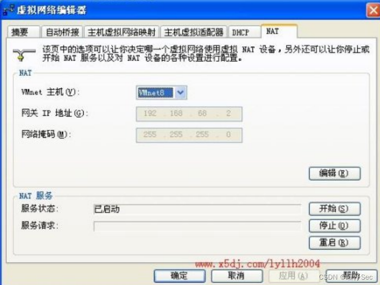 点击VMnet8,再点击开始按钮