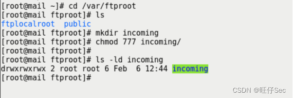 使用匿名登入时,所登入的目录。默认值为/var/ftp。注意ftp目录不能是777的权限属性,即匿名用户的家目录不能有777的权限。