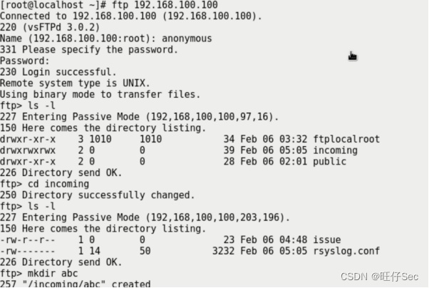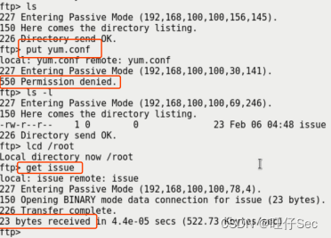②当chroot_list_enable=YES,chroot_local_user=NO时,在/etc/vsftpd.chroot_list文件中列出的用户,不能切换到其他目录;未在文件中列出的用户,可以切换到其他目录。