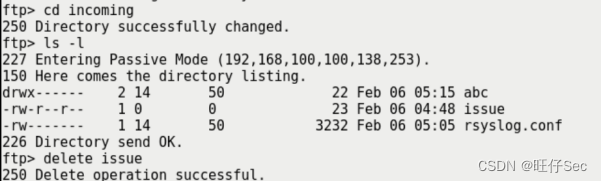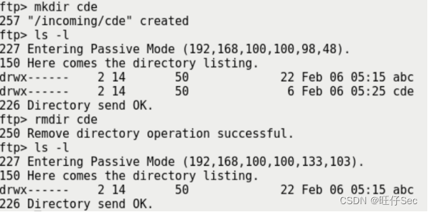 在被动方式FTP中,命令连接和数据连接都由客户端,这样就可以解决从服务器到客户端的数据端口的入方向连接被防火墙过滤掉的问题。当开启一个FTP连接时,客户端打开两个任意的非特权本地端口(N >; 1024和N+1)。第一个端口连接服务器的21端口,但与主动方式的FTP不同,客户端不会提交PORT命令并允许服务器来回连它的数据端口,而是提交PASV命令。这样做的结果是服务器会开启一个任意的非特权端口(P >; 1024),并发送PORT P命令给客户端。然后客户端发起从本地端口N+1到服务器的端口P的连接用来传送数据。
