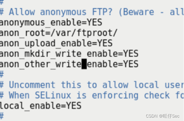 # vim /etc/vsftpd/vsftpd.conf #修改配置文件