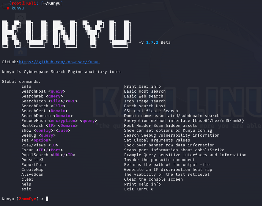 kunyu init --apikey <your zoomeye key> --seebug <your seebug key>