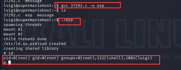 将提权文件下载到靶机之中,然后gcc编译文件并执行,成功提权至root用户!