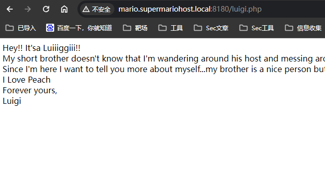访问http://mario.supermariohost.local:8180/luigi.php目录发现有一段信息存在